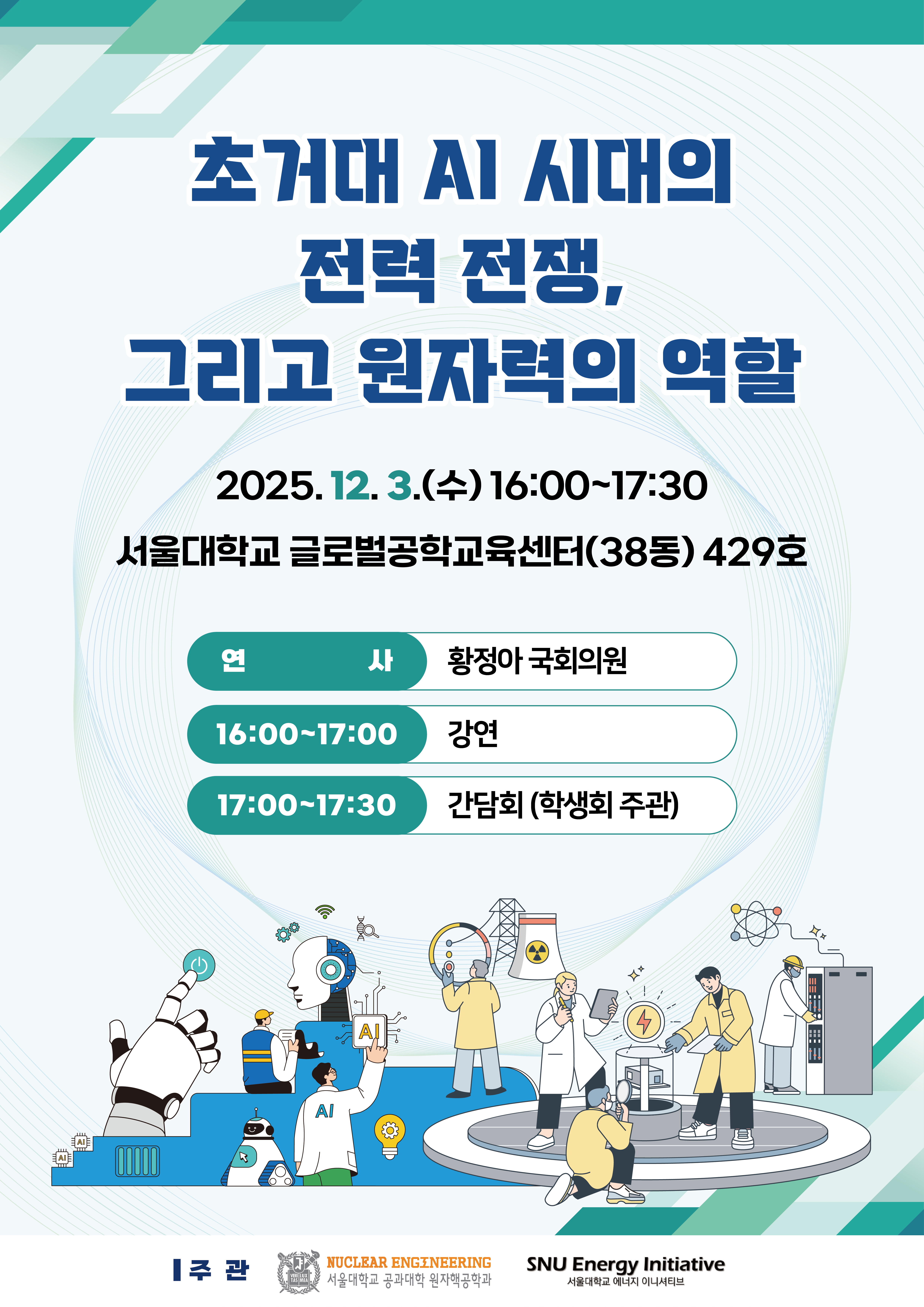 [공모전/홍보] 황정아 국회의원 초청 강연: 초거대 AI 시대의 전력 전쟁, 그리고 원자력의 역할(12/3(수), 16시)(+포스터 추가)