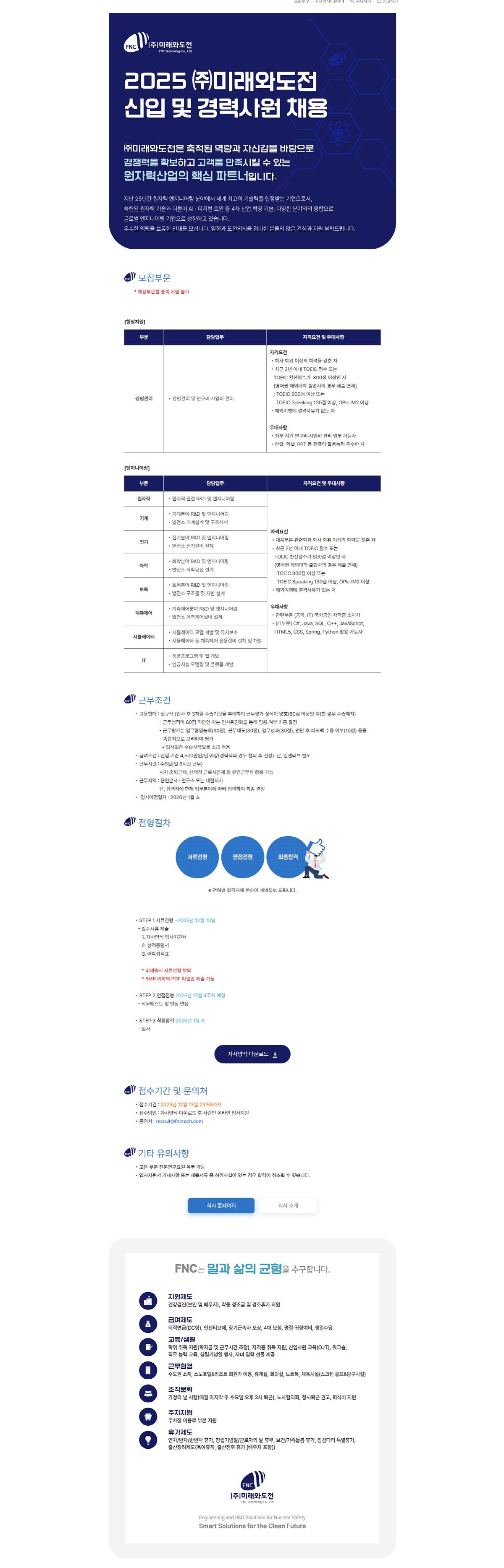 2025 (주)미래와도전 부문별 신입 및 경력사원 채용 ~12/13
